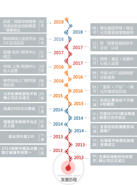 拓瑞檢測(cè)于2013年9月成立,是國(guó)內(nèi)動(dòng)物第三方檢測(cè)平臺(tái)、國(guó)內(nèi)小動(dòng)物醫(yī)學(xué)診斷項(xiàng)目醫(yī)學(xué)檢測(cè)機(jī)構(gòu)。