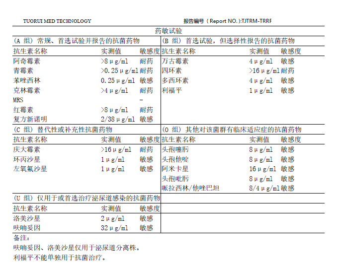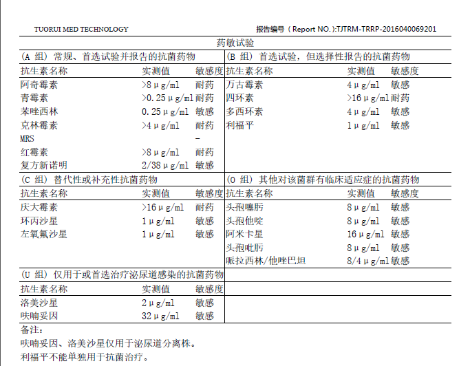 A組 包括常規(guī)報告、首選試驗的藥物組合,以及一些對特定菌群的常規(guī)試驗報告。